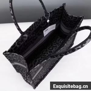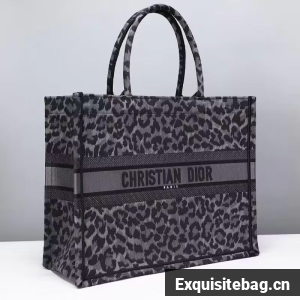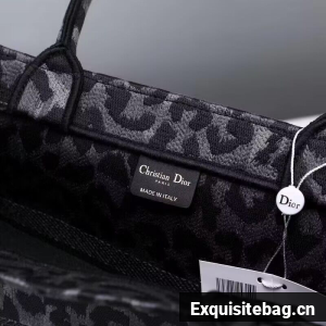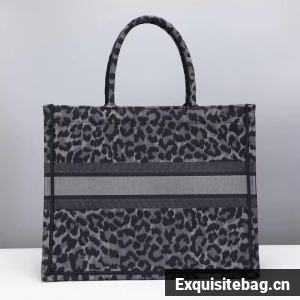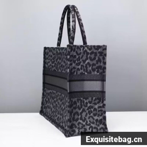 DIOR BOOK TOTE Embroidery M1289ZR Gray Leopard Print