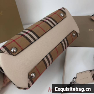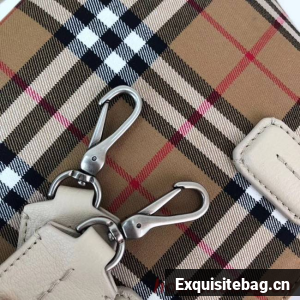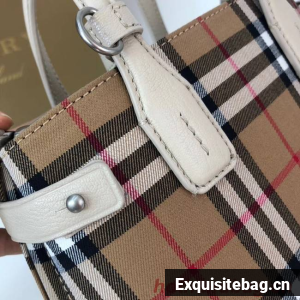 Magnetic press stud closureChecked pattern, goatskin leather trims, rolled handles, inner zipper pocket, two inner pouch pockets, hand-painted edges100% cotton, goat leather trimMade in ItalyReplica Burberry Bag comes with:serial numbers, care booklet, dust bag, Card, tag.