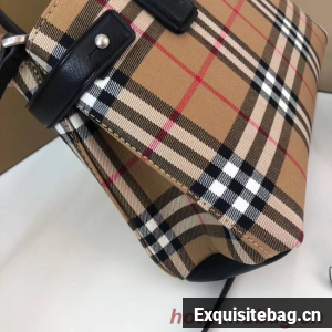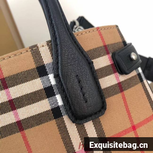 Magnetic press stud closureChecked pattern, goatskin leather trims, rolled handles, inner zipper pocket, two inner pouch pockets, hand-painted edges100% cotton, goat leather trimMade in ItalyReplica Burberry Bag comes with:serial numbers, care booklet, dust bag, Card, tag.