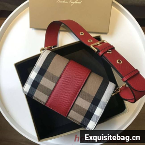 BURBERRY Hampshire vintage check leather cross-body bag 24581 red