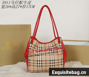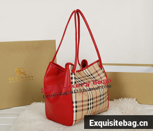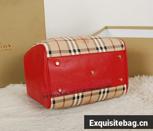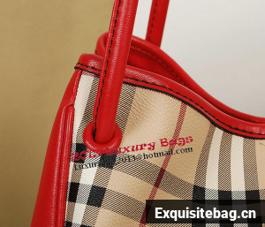 BurBerry Small Haymarket Check Tote Bag B5911 Red - Haymarket check tote bag with contrast patent leather trim- Refined hand-painted edges, open top with stay fastening and magnetic closure, leather straps- Interior zip pocket- Polished metal hardware Size: W26 x H27 x D17 cm Replica Burberry Bags comes with:serial numbers, care booklet, Burberry dust bag, Burberry Card, tag.