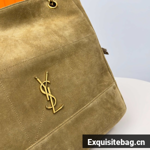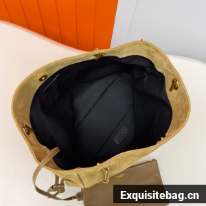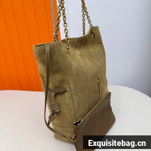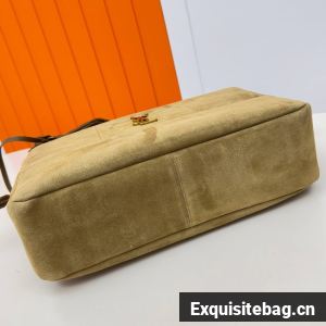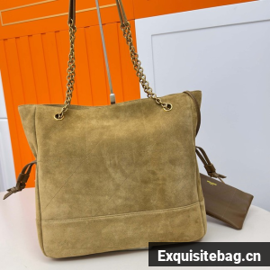 THE SHOPPING VERSION OF THE JAMIE IN SUEDE, DECORATED WITH CARRÉ RIVE GAUCHE TOPSTITCHING.