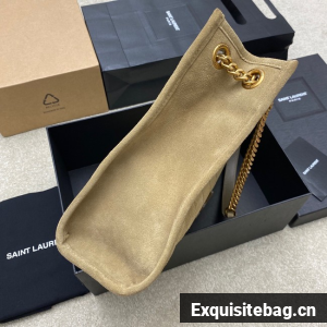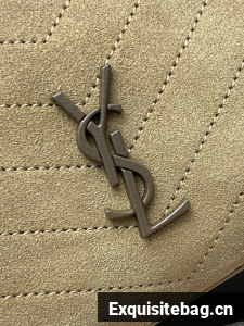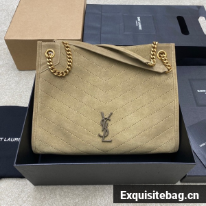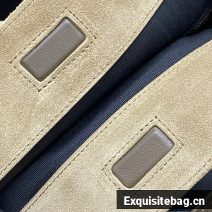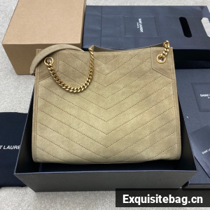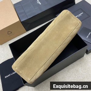 TOTE BAG IN SUEDE DECORATED WITH CHEVRON-QUILTED TOPSTITCHING AND A COVERED CASSANDRE.