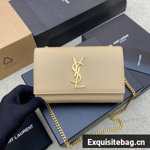 SAINT LAURENT KATE SMALL IN GRAIN DE POUDRE EMBOSSED LEATHER 469390 DARK BEIGE