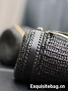 SAINT LAURENT SADE SMALL TUBE BAG IN RAFFIA AND LEATHER Y996704 BLACK