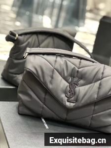 SAINT LAURENT MEDIUM PUFFER IN QUILTED NYLON AND LEATHER Y988336 BLACK