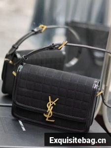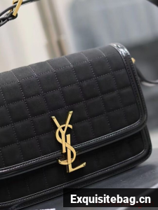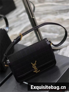 SAINT LAUREN SOLFERINO MEDIUM SATCHEL IN QUILTED NUBUCK SUEDE Y886305 BLACK