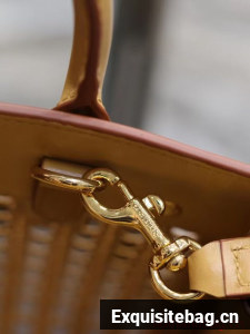 BAG FEATURING GUSSETED SIDES AND A DETACHABLE PADLOCK IN A LEATHER CASE.
