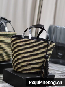 :: SAINT LAUREN RIVE GAUCHE TOTE BAG IN RAFFIA AND LEATHER Y860030 apricot