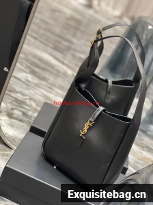 :: SAINT LAUREN LE 5 A 7 SOFT SMALL HOBO BAG IN SMOOTH LEATHER 713938 black