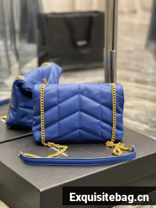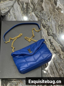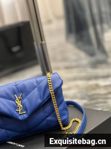 :: Yves Saint Laurent PUFFER SMALL CHAIN BAG IN QUILTED LAMBSKIN 620333 blue