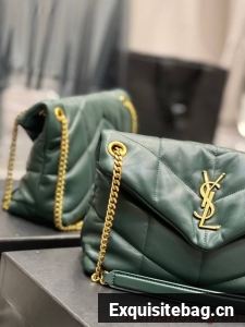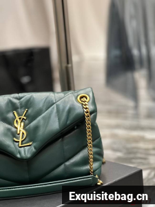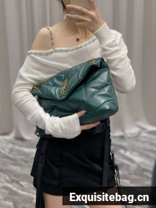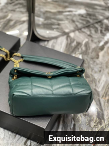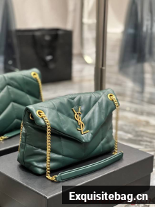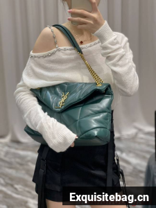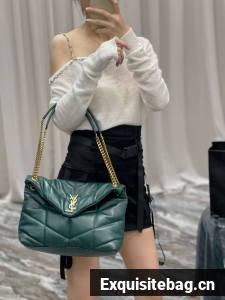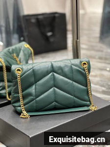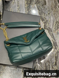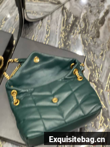 :: Yves Saint Laurent PUFFER SMALL CHAIN BAG IN QUILTED LAMBSKIN 5774761 blackish green