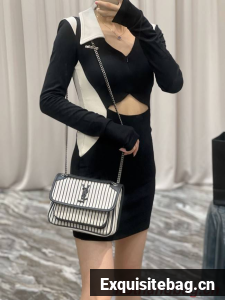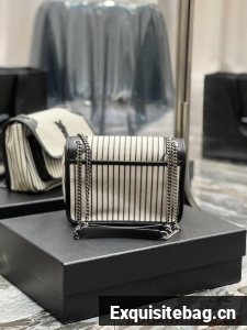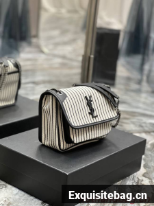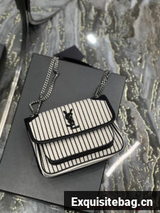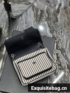 SAINT LAURENT NIKI SMALL CHAIN BAG IN CANVAS 633151 CREAM ET NOIR