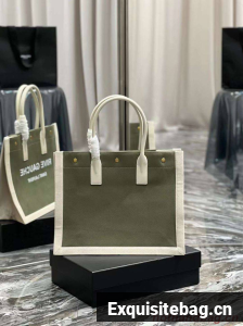 Yves Saint Laurent TWEED AND LAMBSKIN shopping bag Y677943 green&white