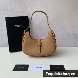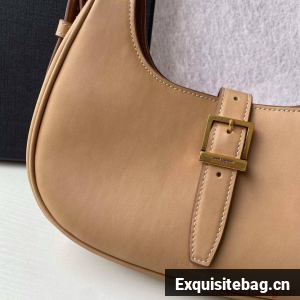 HOBO BAG WITH SAINT LAURENT PARIS-ENGRAVED MAGNETIC BUCKLE CLOSURE AND AN ADJUSTABLE LEATHER HANDLE FOR SHOULDER OR HAND CARRY.