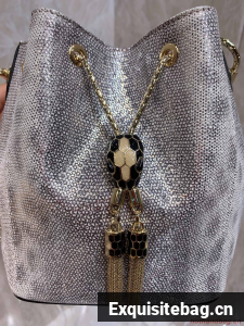 :: BVLGARI Original Snake Skin Bucket Bag B287614 Silver