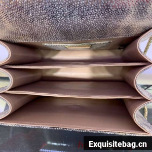 Clasp fastening at frontTop carry handle, fold-over design, enamel Serpenti head closure with green malachite eyes, adjustable and optional snake body chain strap and leather strap, gold-plated hardware, three interior gussets, internal pocket mirror100% calf leatherMade in ItalyReplica BVLGARI Bag comes with: serial numbers, care booklet, dust bag, Card, tag.