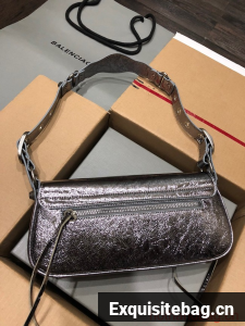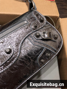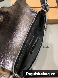 :: Balenciaga WOMENS LE CAGOLE SHOULDER BAG 6688 silver gray