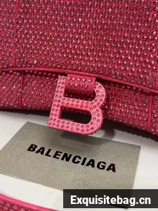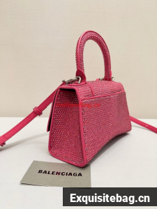 :: Balenciaga WOMENS HOURGLASS XS HANDBAG WITH RHINESTONES 283328 IN PINK
