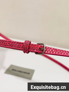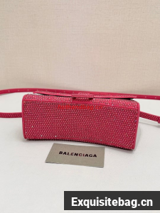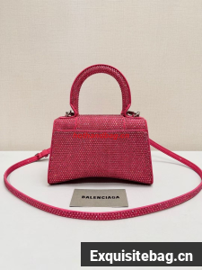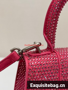 Balenciaga WOMENS HOURGLASS XS HANDBAG WITH RHINESTONES 283328 IN PINK
