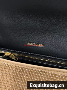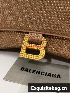 Hourglass Handbag suede calfskin with rhinestones, shiny hardwar• Suede calfskin and rhinestones• Handbag• Curvilinear base• One handle• Adjustable and removable crossbody strap (21,6 inch)• Studded magnet closure• B logo hardware with rhinestones• 1 back pocket• Nappa lambskin lining• Made in Italy• Wipe with a soft clothMaterial: 100% calfskinReplica Balenciaga Comes with serial numbers, authenticity card, dust bag and care booklet.
