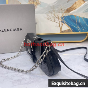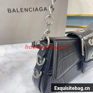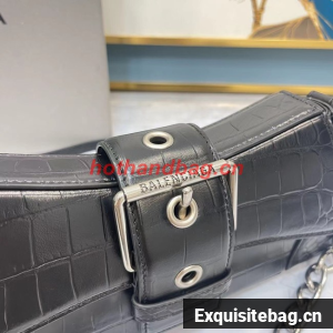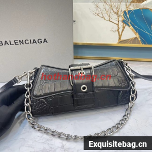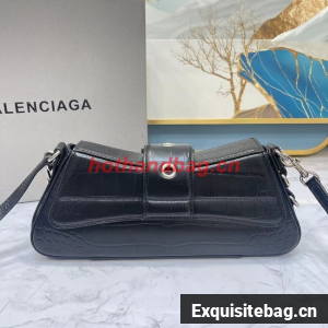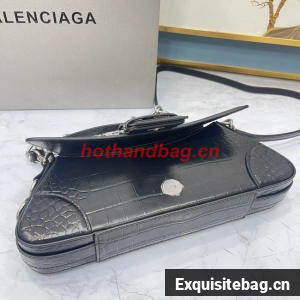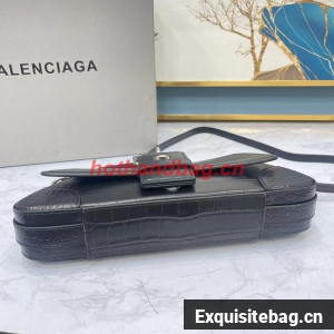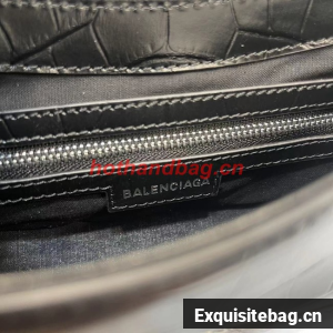Balenciaga LINDSAY CROCODILE EMBOSSED SHOULDER BAG WITH STRAP 6088 black
