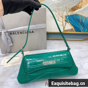 Balenciaga LINDSAY CROCODILE EMBOSSED SMALL SHOULDER BAG WITH STRAP 6009 green