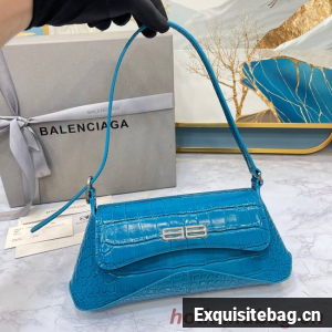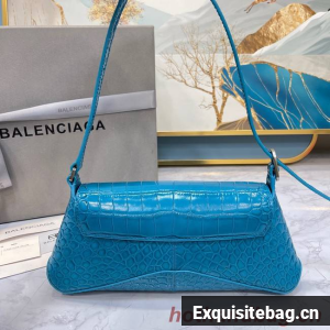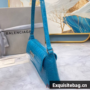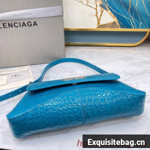 Balenciaga LINDSAY CROCODILE EMBOSSED SMALL SHOULDER BAG WITH STRAP 6009 blue