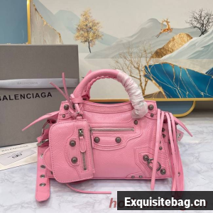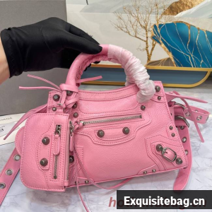 Neo Cagole XS Handbag in pink Arena lambskin, aged-silver hardware