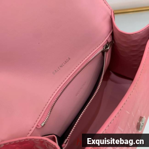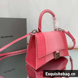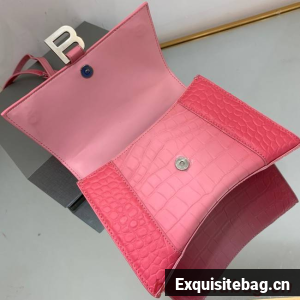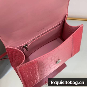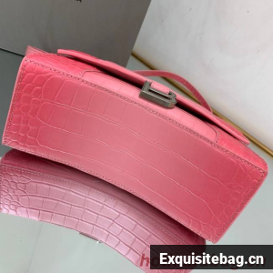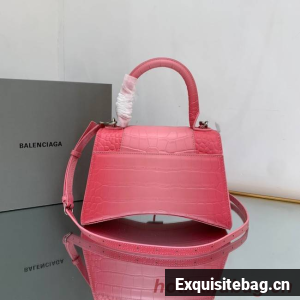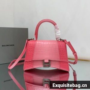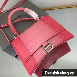 Hourglass Small Handbag in pink degrade crocodile embossed calfskin, aged-silver hardwareDimensions : L9 x H5,9 x W3,9 inch• Degrade crocodile embossed calfskin• Handbag• Curvilinear base• One handle• Adjustable and removable crossbody strap (21,6 inch)• Studded magnet closure• Aged-silver B logo hardware• 1 back pocket• 1 inner zipped pocket• Nappa lambskin lining• Made in Italy• Wipe with a soft clothMaterial: 100% calfskinProduct ID: 5935462107Replica Balenciaga comes with:serial numbers, care booklet, dust bag, Card, tag.