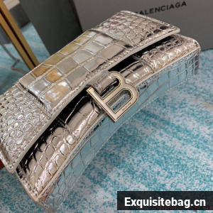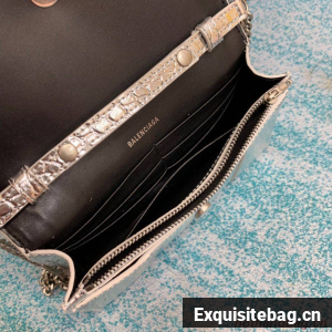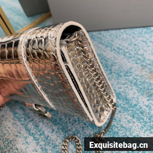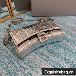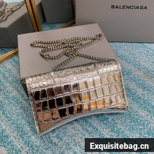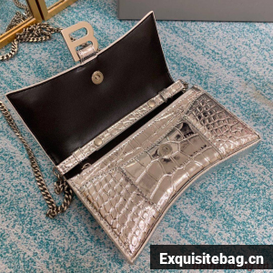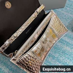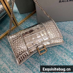 Balenciaga HOURGLASS Wallet With Chain Crocodile Embossed 656050 Silver