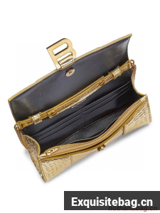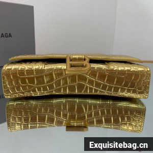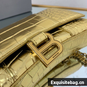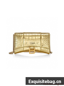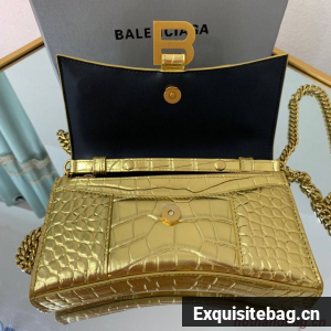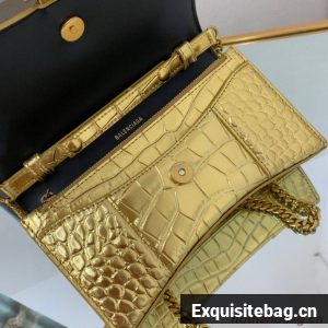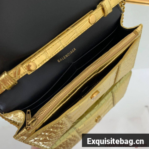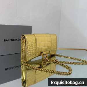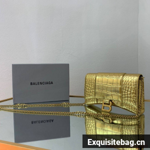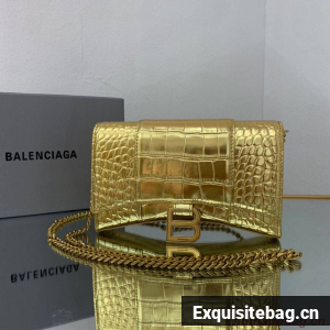:: Balenciaga HOURGLASS Wallet With Chain Crocodile Embossed 656050 Gold