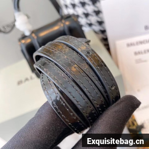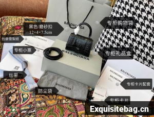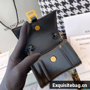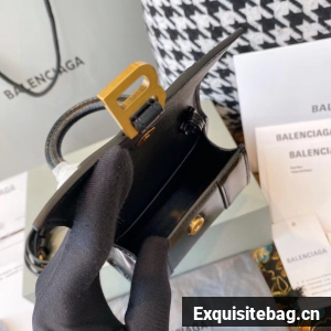 Balenciaga WOMENS HOURGLASS MINI TOP HANDLE BAG shiny box calfskin M8000 black