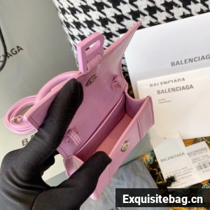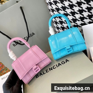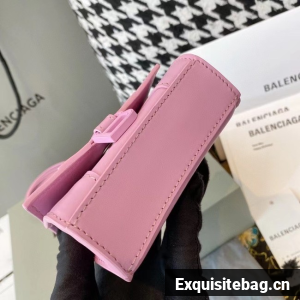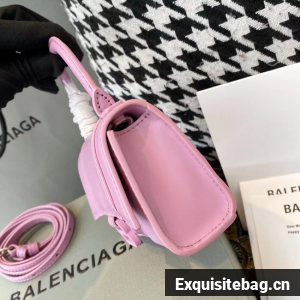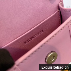 Balenciaga WOMENS HOURGLASS MINI TOP HANDLE BAG shiny box calfskin M8000 pink