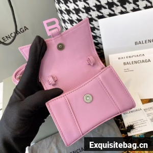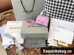 :: Balenciaga WOMENS HOURGLASS MINI TOP HANDLE BAG shiny box calfskin M8000 pink