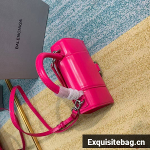 Balenciaga Hourglass XS Top Handle Bag shiny box calfskin 28331 neon pink