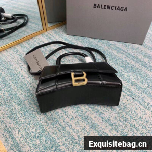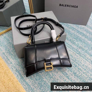 Balenciaga Hourglass XS Top Handle Bag shiny box calfskin 28331 black