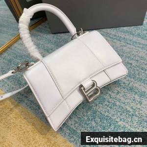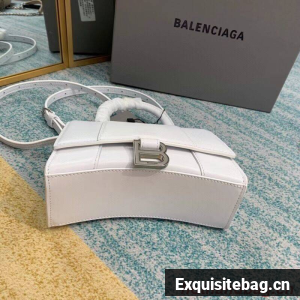 Balenciaga Hourglass XS Top Handle Bag shiny box calfskin 28331 white