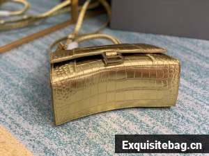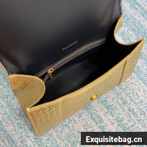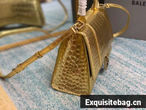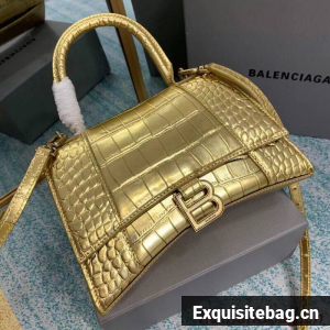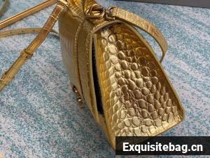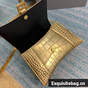 Balenciaga HOURGLASS SMALL TOP HANDLE BAG crocodile embossed calfskin B108895E gold