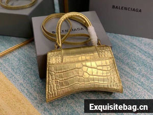 :: Balenciaga HOURGLASS SMALL TOP HANDLE BAG crocodile embossed calfskin B108895E gold