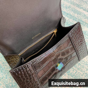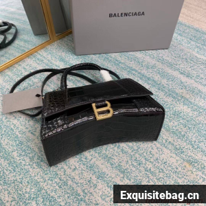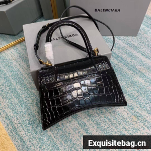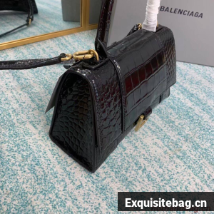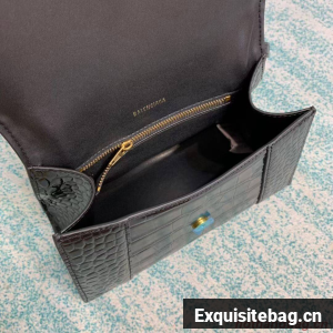 Balenciaga HOURGLASS SMALL TOP HANDLE BAG crocodile embossed calfskin B108895E black