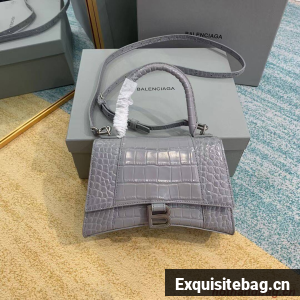 Balenciaga HOURGLASS SMALL TOP HANDLE BAG crocodile embossed calfskin B108895E grey