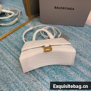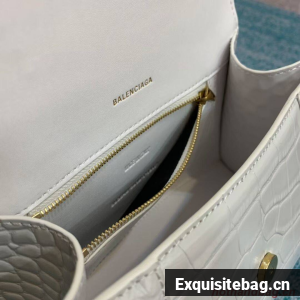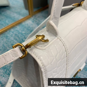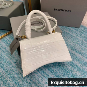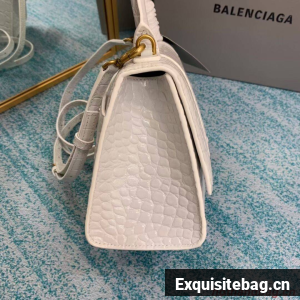Balenciaga HOURGLASS SMALL TOP HANDLE BAG crocodile embossed calfskin B108895E white