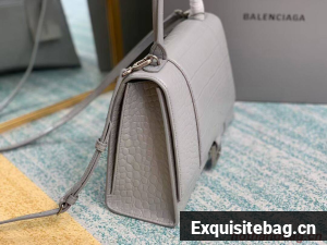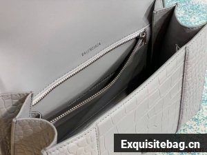 • Shiny crocodile embossed leather• Hourglass shape• Curvilinear base• Long flap• Adjustable and removable crossbody strap (21,6 inch)• 1 handle• Magnet closure with aged-gold B logo (brass)• 1 back pocket• 2 inner patch pockets• 1 inner zipped pocket• Nappa lambskin lining• Made in Italy• Wipe with a soft clothMaterial: 100% calfskinReplica Balenciaga Comes with serial numbers, authenticity card, dust bag and care booklet.