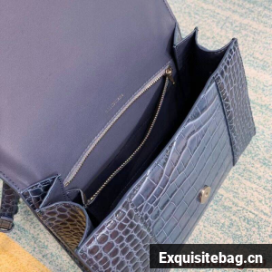 • Shiny crocodile embossed leather• Hourglass shape• Curvilinear base• Long flap• Adjustable and removable crossbody strap (21,6 inch)• 1 handle• Magnet closure with aged-gold B logo (brass)• 1 back pocket• 2 inner patch pockets• 1 inner zipped pocket• Nappa lambskin lining• Made in Italy• Wipe with a soft clothMaterial: 100% calfskinReplica Balenciaga Comes with serial numbers, authenticity card, dust bag and care booklet.