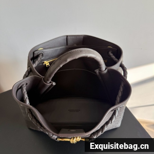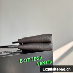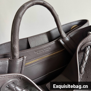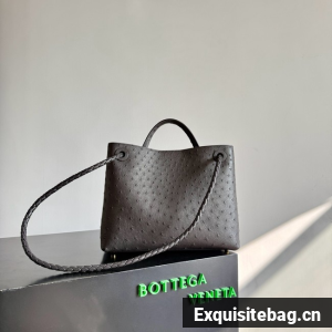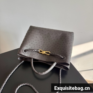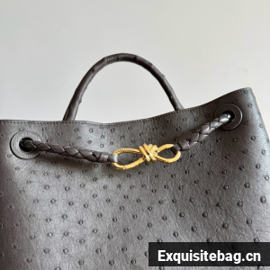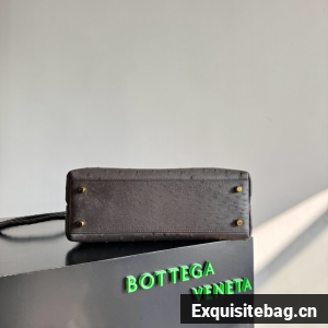 Top handle bag in ostrich leather with signature knot detail and sliding cross-body strap.