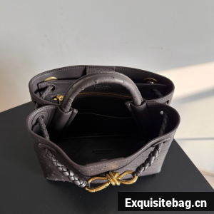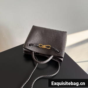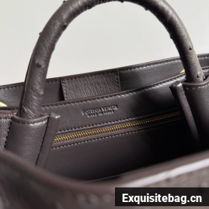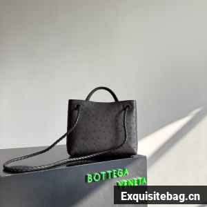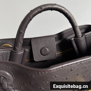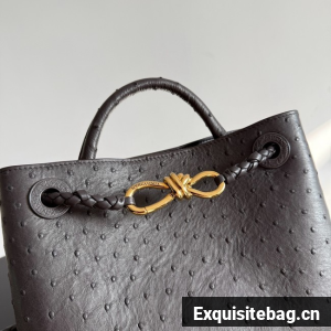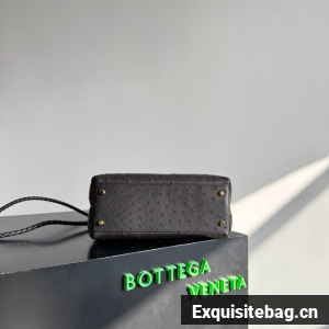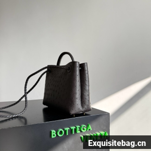 Top handle bag in ostrich leather with signature knot detail and sliding cross-body strap.