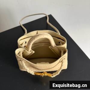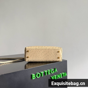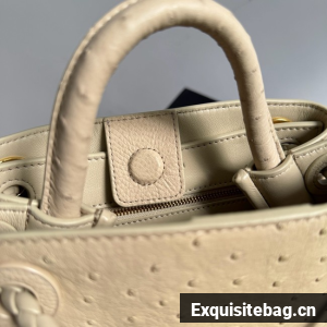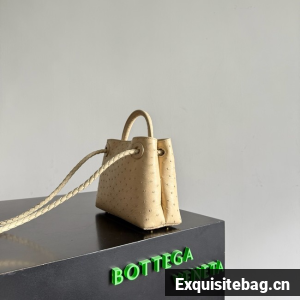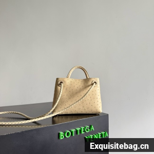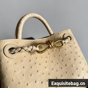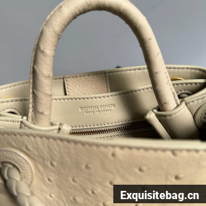 Top handle bag in ostrich leather with signature knot detail and sliding cross-body strap.