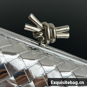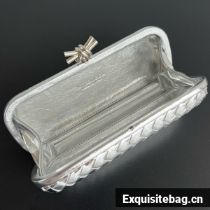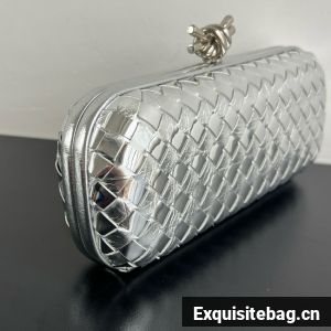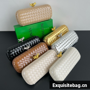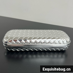 Minaudière clutch with elongated silhouette meticulously crafted from soft padded Intreccio leather.