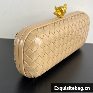 Minaudière clutch with elongated silhouette meticulously crafted from soft padded Intreccio leather.• Long padded Intreccio leather minaudière• Single compartment• Metallic knot clasp closure• Lining: Lambskin• Hardware: Brass finish• Height: 11.5 cm | 4.5"• Width: 27 cm | 10.6"• Depth: 5 cm | 2"Made in: ItalyProduct code: 754783V01D11019Replica Bottega Veneta Comes with serial numbers, authenticity card, dust bag and care booklet.